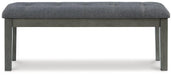 Cool and on-trend. This dining bench sports a two-tone gray look for a contemporary-yet-casual feel. The cushioned foam seat in a gray textural fab...