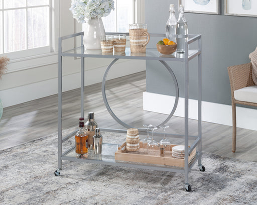 SauderA utility cart with style and function? What could be better! This bar cart from the Market Commons collection combines industrial elegance with mu...